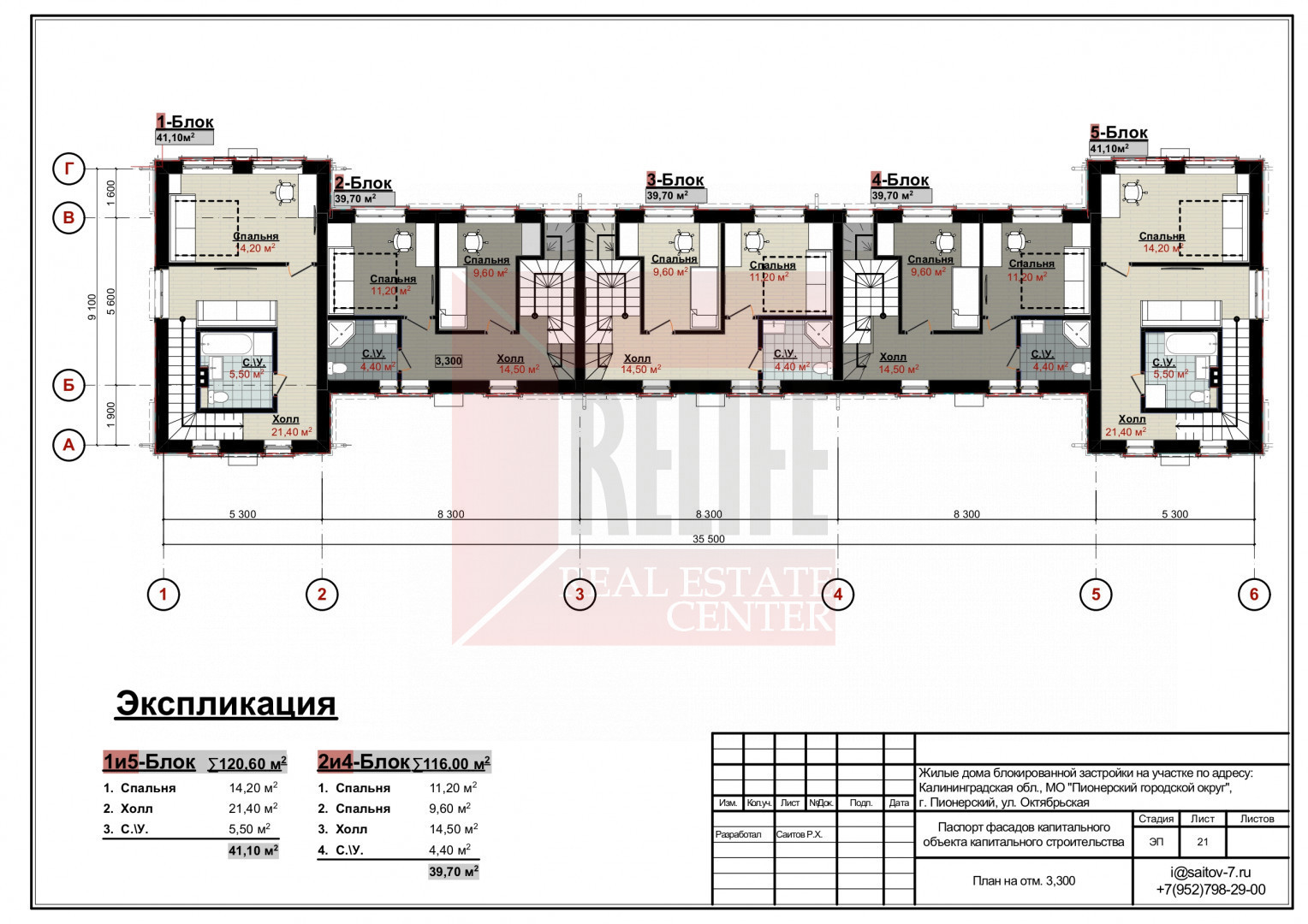 Таунхаус расположен на земельном участке 2.55 сотки в собственности. Территория комплекса полностью огорожена, выполнено мощение дорожек и тротуаров, установлено уличное освещение и проведено озеленение. В шаговой доступности вся инфраструктура города и конечно же широченный пляж.