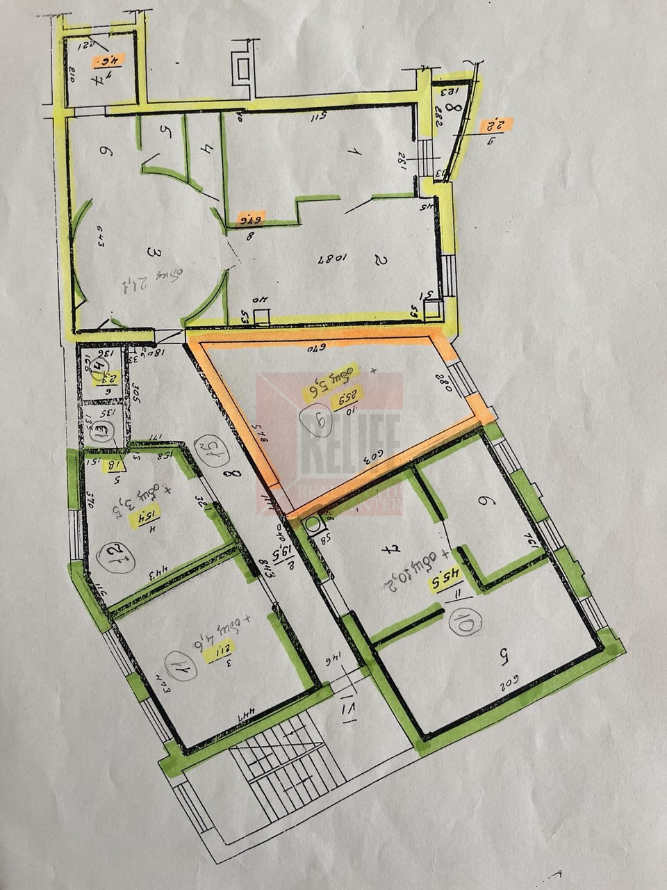 - Все площади в отличном состоянии, выполнен дорогой ,качественный ремонт в сопровождении дизайнера, продуманная правильная планировка всех кабинетов , использованы очень качественные строительные отделочные материалы ( в т.ч. при отделке холла применена веницианская штукатурка), установлены все двери в кабинетах из натурального дерева.