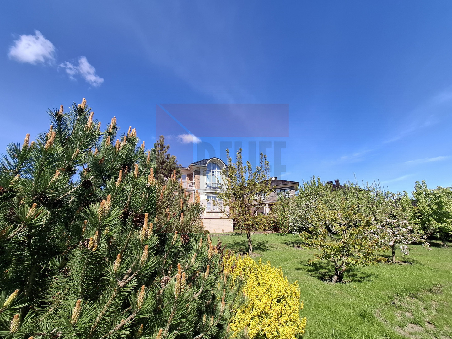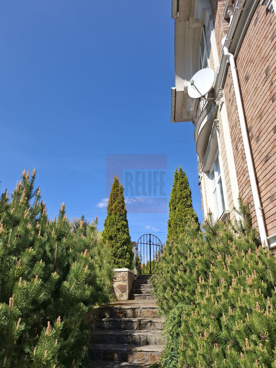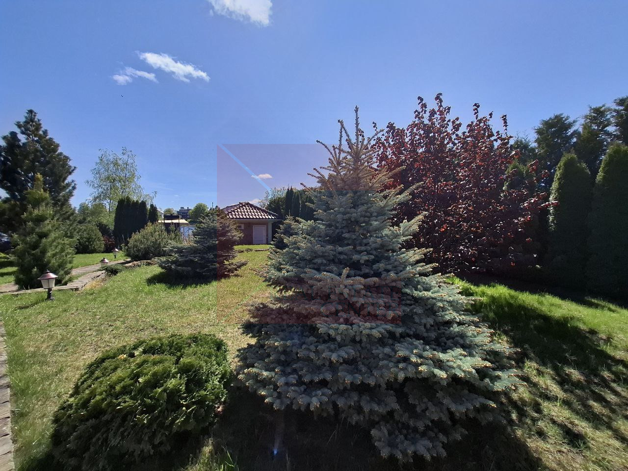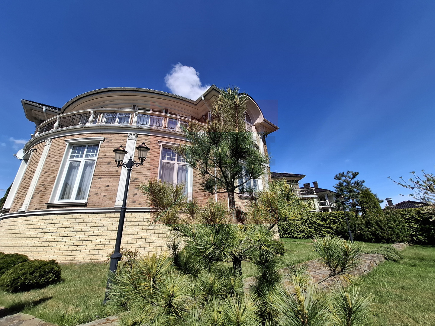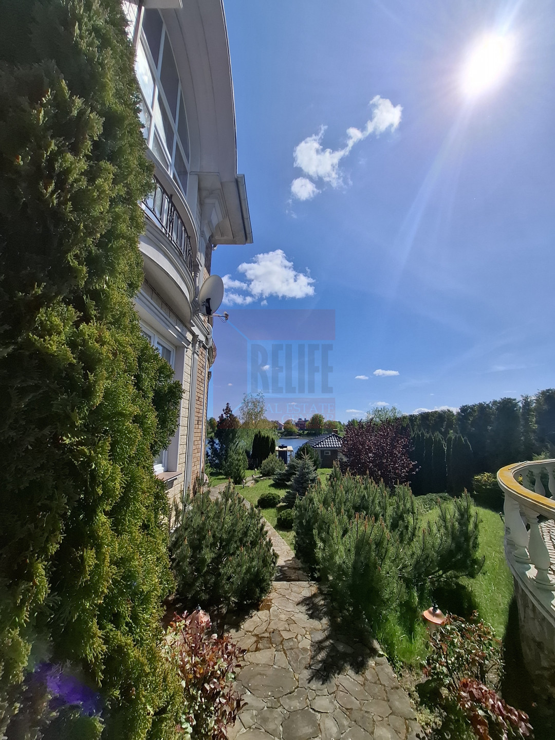Коттедж расположился на земельном участке 12 соток. Выполнен ландшафтный дизайн.