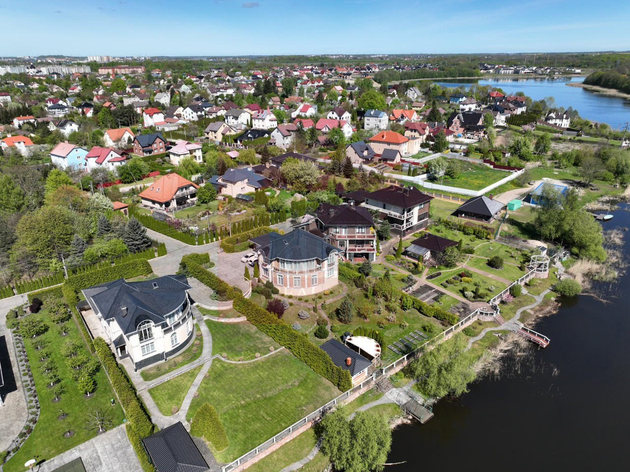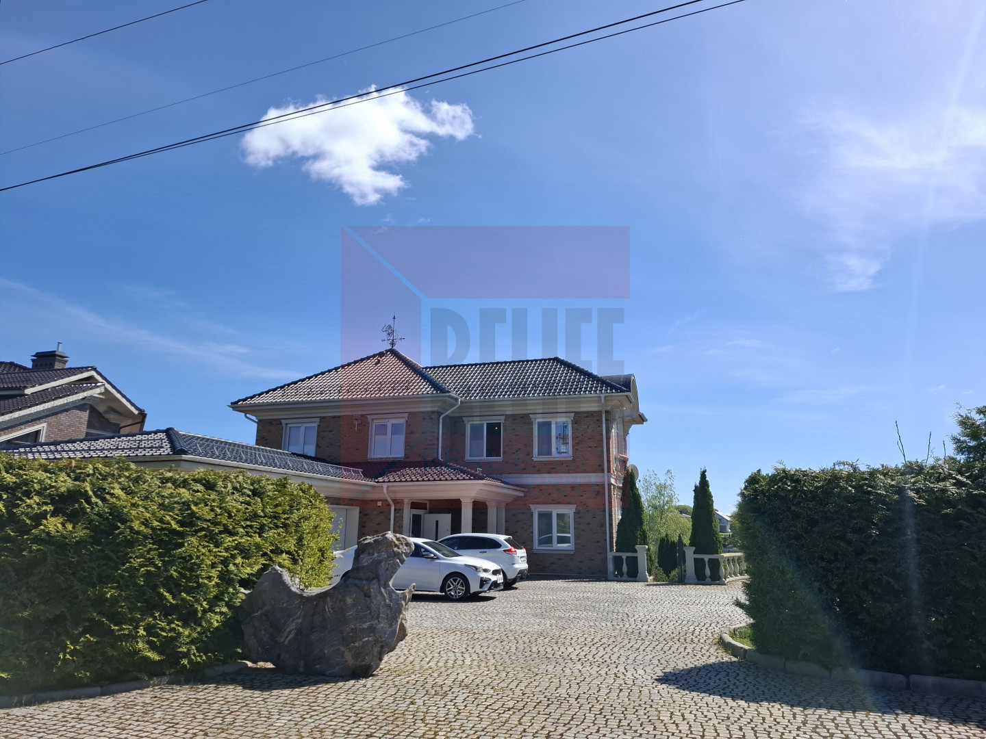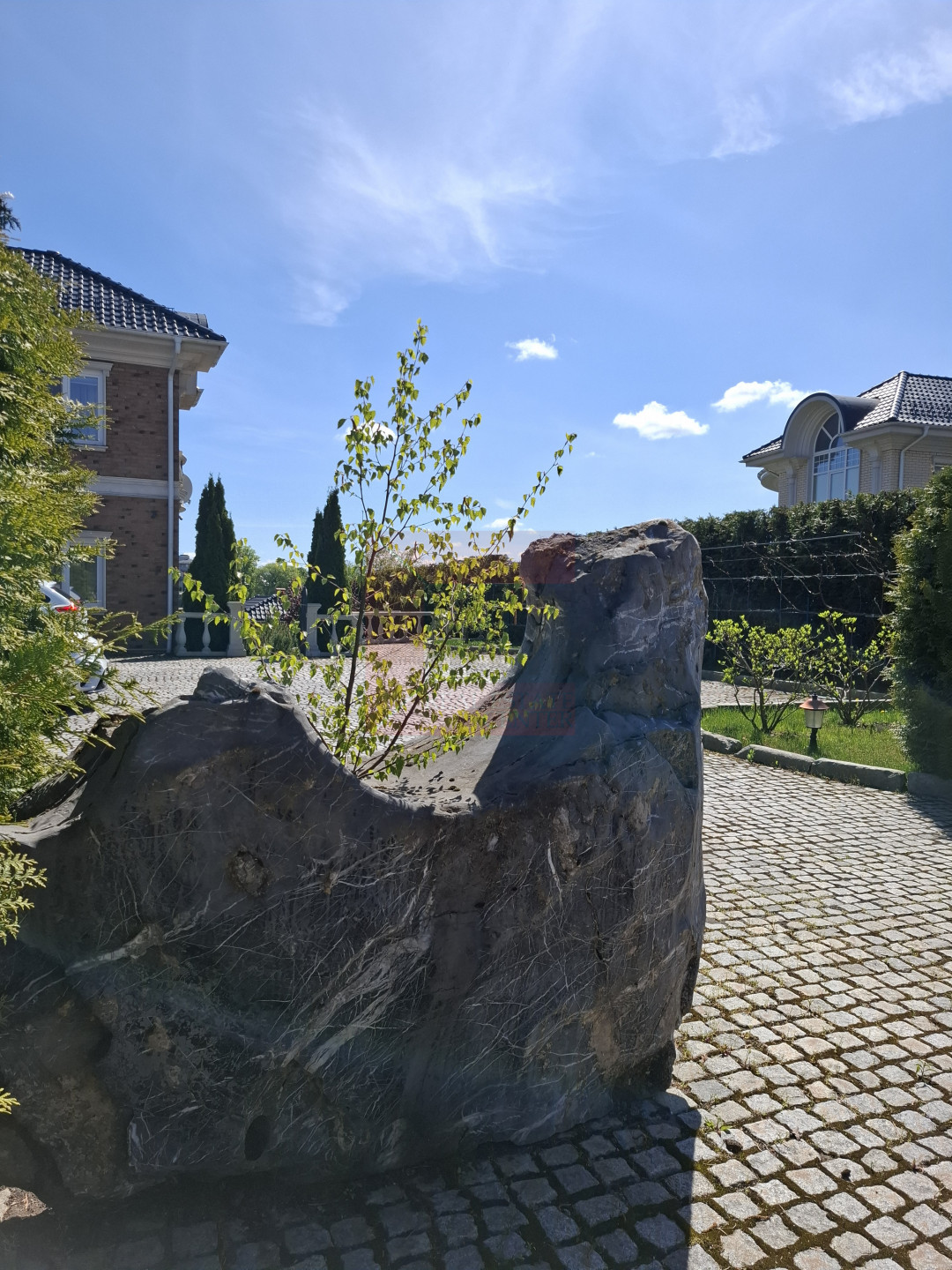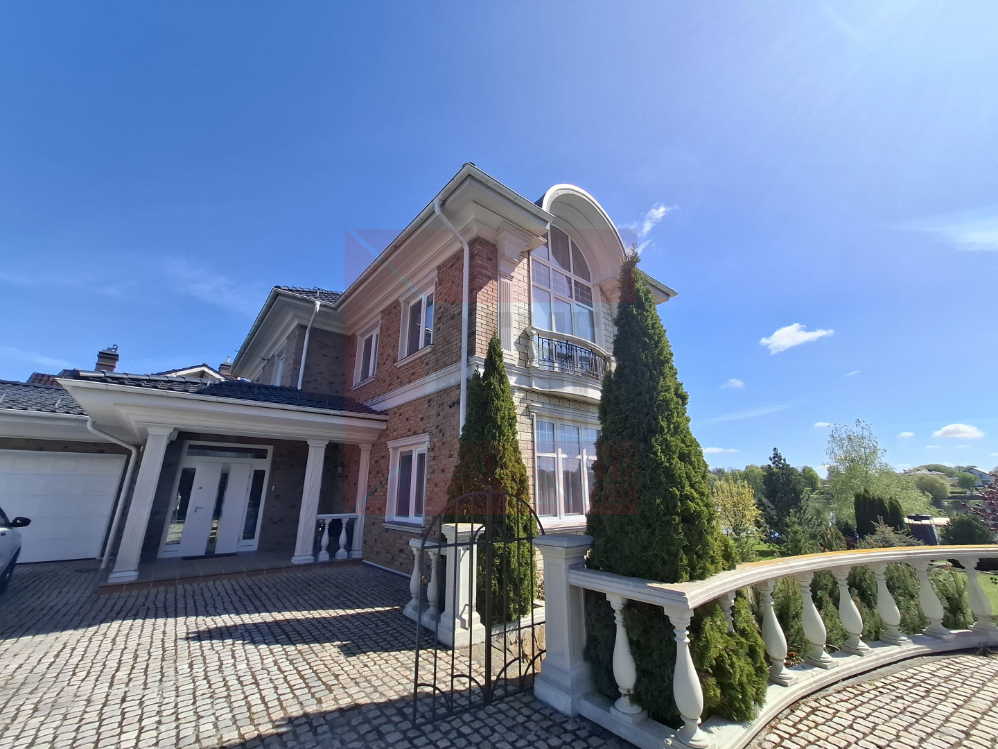 Дом находится в коттеджном комплексе с огороженной территорией. Охрана на въезде и видеонаблюдение создают защищённость комплекса. Вся территория комплекса вымощена мелкой брусчаткой.