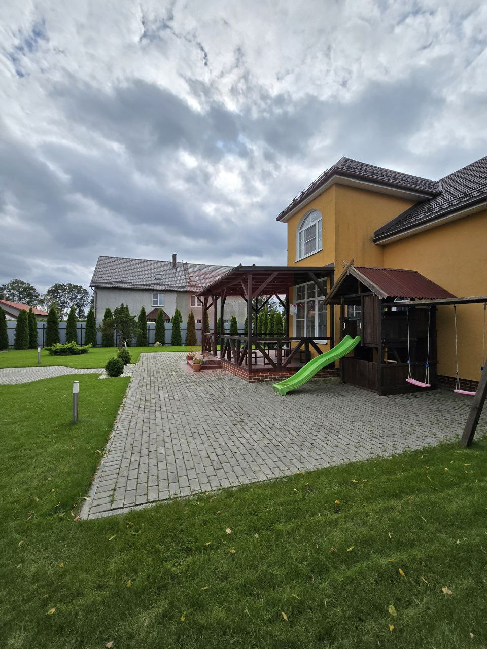 Дом в 10 км от Калининграда, есть автобус каждые 15 минут. Рядом школа, детский сад, футбольное поле, магазины, ФАП, администрация, Ozon. В 1,5 км — станция «Константиновка».