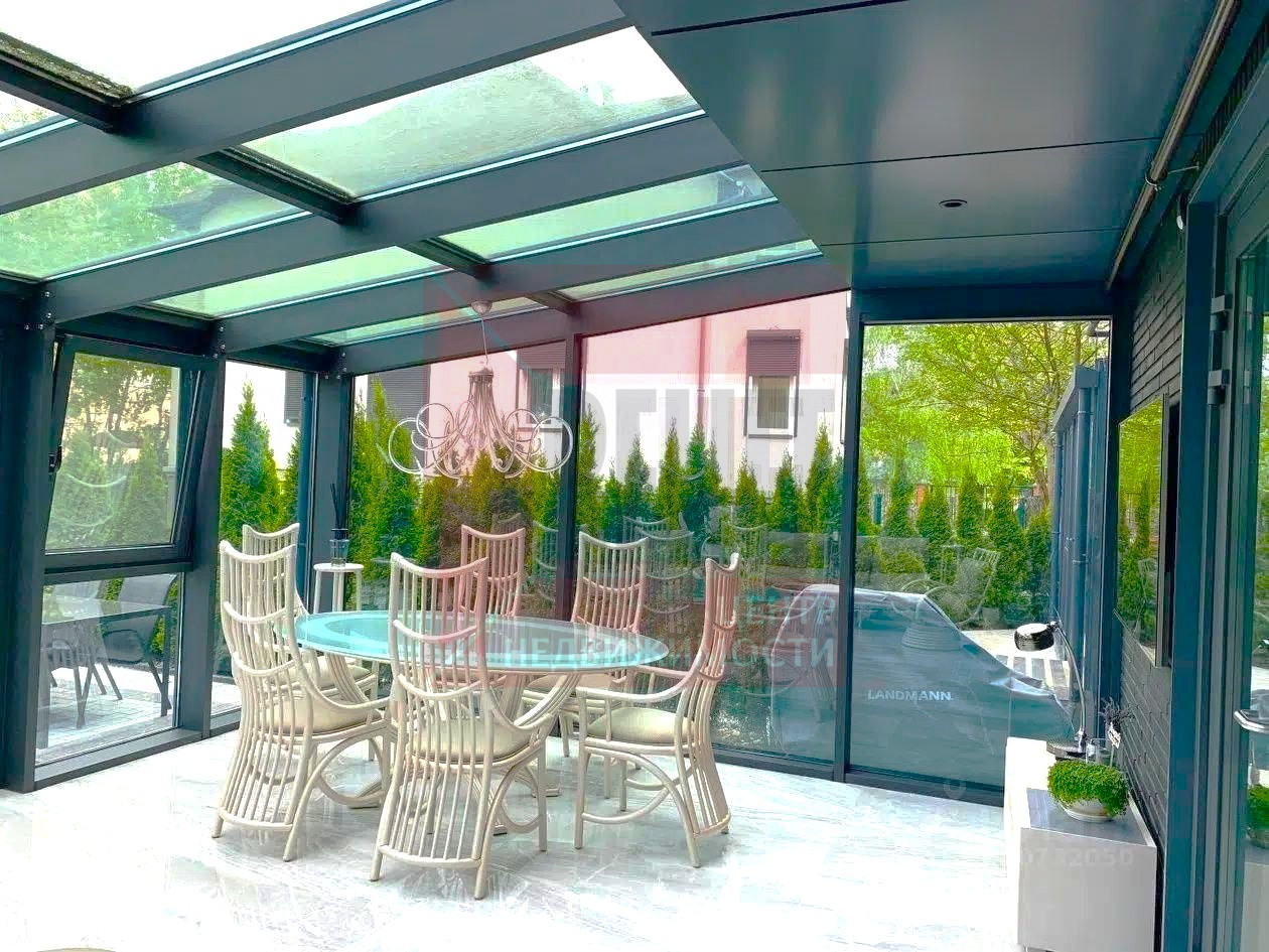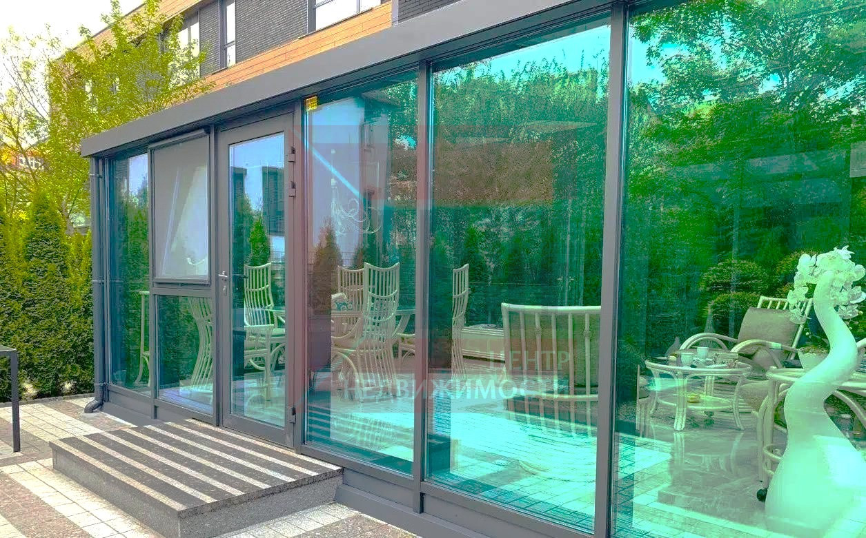 * Панорамное остекление* с «теплым» алюминиевым профилем и энергосберегающими стеклами, наполняющее дом светом.
