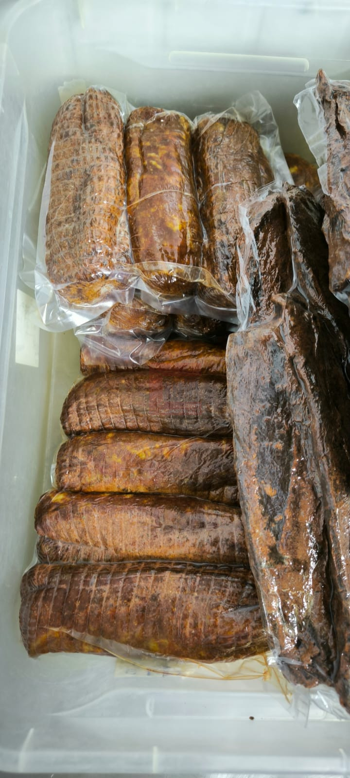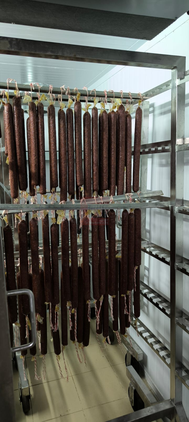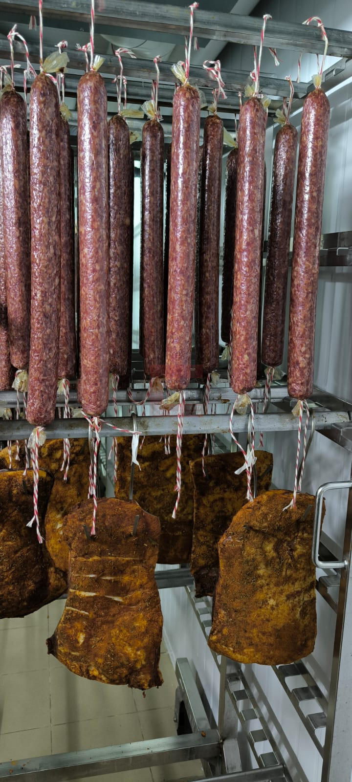 Продукция вялится естественным образом, имеет долгий период созревания - от 10 до 30 дней.
