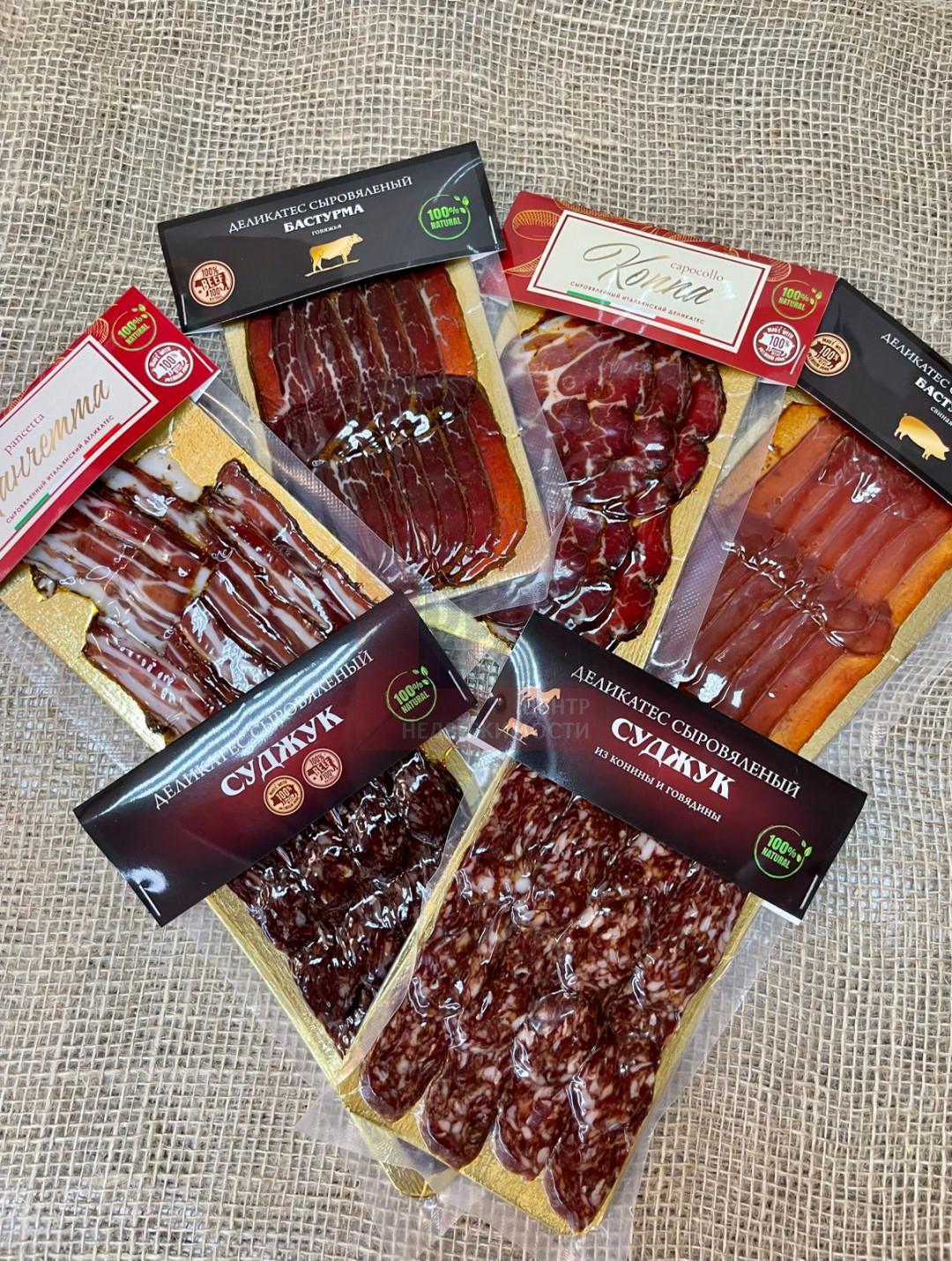Асcортимент включает в себя 9 наименований: бастурма (говядина, конина, свинина), суджук из свинины/говядины и конины/говядины, ломо (карбонат свиной), коппа (шея свиная), панчетта (грудинка), махан из конины (казы).