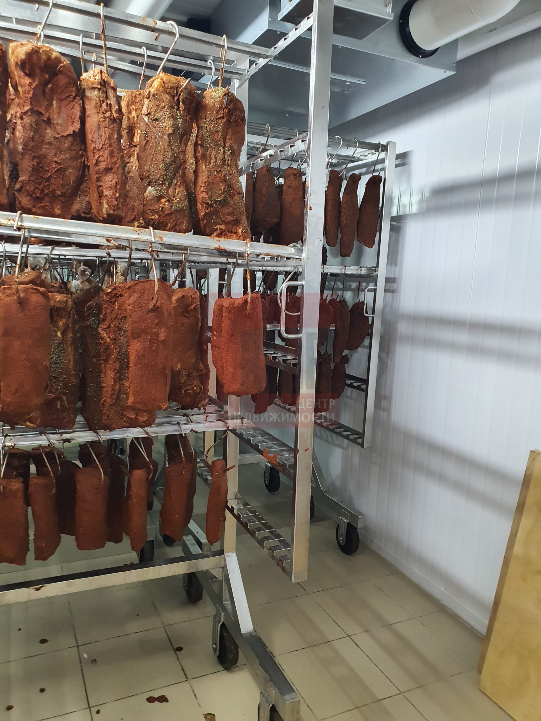 Срок хранения - 6 мес. при температуре + 3- +13, в вакуумной упаковке. Площадь и конструктив помещения позволяет также развивать направление копчения продукции. Чистая прибыль производства при 100 кг. готовой продукции минимум 200 тысяч рублей в месяц !