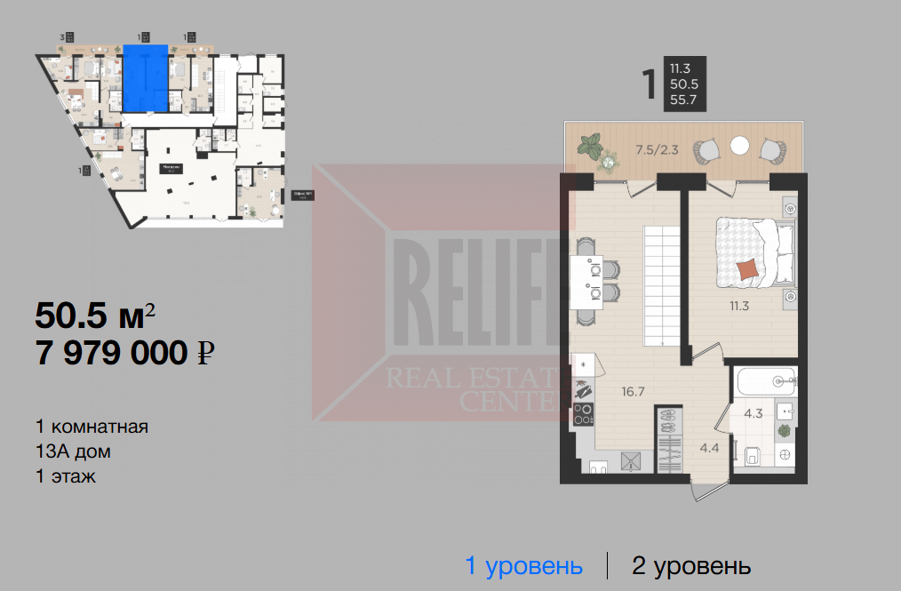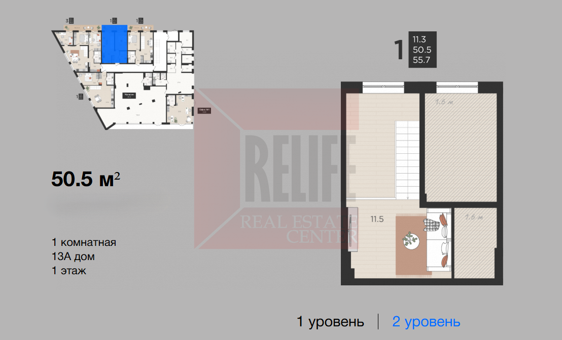 Общая площадь квартиры 50,5 кв. м, продуманная планировка, которая максимально эффективно позволит использовать пространство помещений и создать любой интерьер: просторная зона холла 4,4 кв. м. комната спальни 11,3 кв. м., кухня 16,7 кв. м. и комната на втором уровне 11,5 кв. м., ванная комната 4,3 кв. м. Высокие потолки 3 м и окна из кухни-гостиной создают простор и комфорт для проживания. Автономное отопление обеспечит низкие коммунальные платежи. Отделка квартиры «серый ключ»: выполнена цементная стяжка полов, стены и внутренние перегородки оштукатурены, подогрев полов в коридоре. Для удобства наших клиентов возможно выполнение качественного ремонта и полная комплектация мебелью, техникой, посудой. Основной материал используемый при постройки комплекса газосиликатный блок. Комплекс имеет приятный внешний облик благодаря современному фасаду, основным компонентом которого является сдержанные естественные тона оттеняются блеском металла крыш и воздушной прозрачностью стекла.