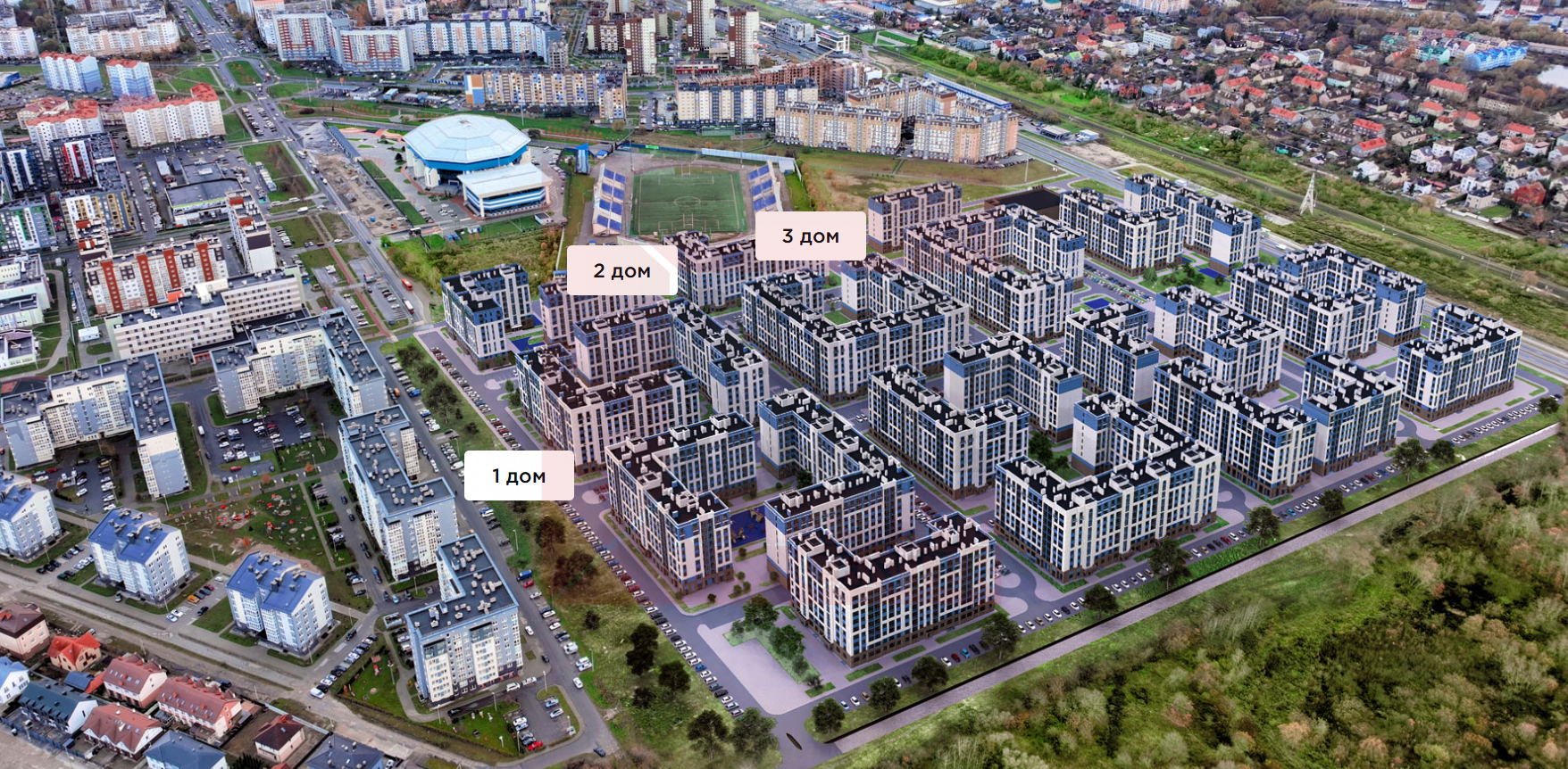 Дом расположился в Ленинградском районе города Калининграда. В шаговой доступности все необходимое для комфортной и беззаботной жизни: В 200 метрах от комплекса расположены: новая современная школа и детский сад №59, поликлиника, Дворец спорта Янтарный, супермаркет Виктория, магазины, кафе, рестораны, фитнес-центры, салоны красоты, велодорожки, ж/д станция.