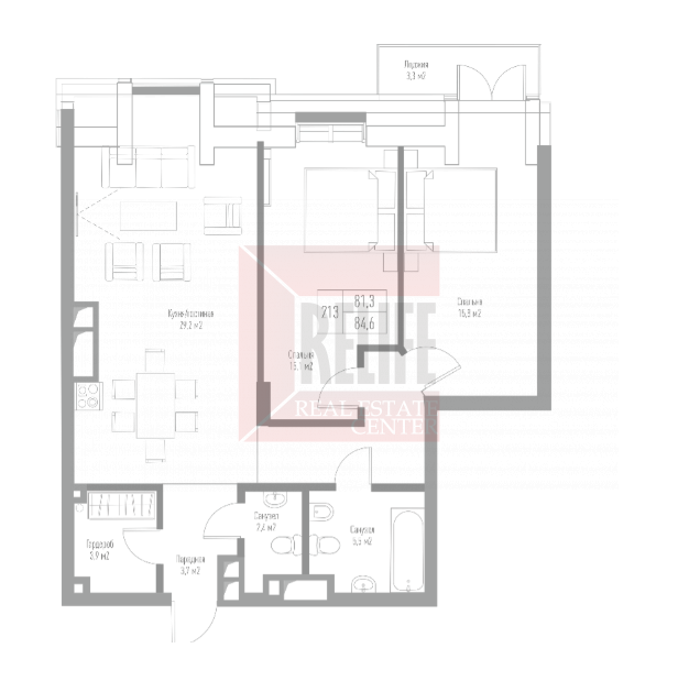 - кухня-гостиная 29,2 кв. м.