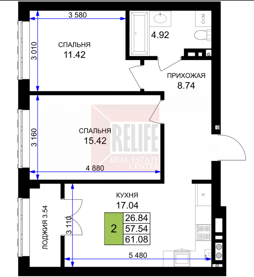 Квартира, 2-к, 61 кв.м., 3 эт. — Relife