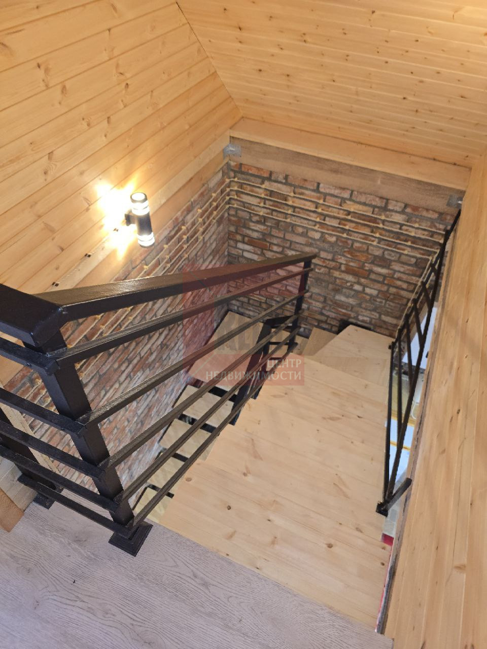 Вертикальная связь между этажами осуществляется деревяной лестницы.