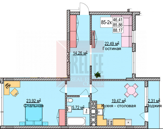 Общая площадь квартиры 87.2 кв.м. Планировка квартиры функциональна и продумана до мелочей, что обеспечивает достойное и комфортное проживание. Просторная кухня 19.47 кв.м с выходом на лоджию, гостиная 22,49 кв.м, спальня 23,92 кв.м, ванная комната и холл 14.26 кв.м. Высота потолков 3 метра. Квартира расположена на 4-ом этаже шестиэтажного жилого дома. Предчистовая отделка можно воплотить любые дизайнерские идеи. Автономное отопление. Архитекторы воплотили в жизнь самые современные и оригинальные архитекторские задумки, в квартире использован особый ритм остекления: максимальные площади стеклянных поверхностей.
