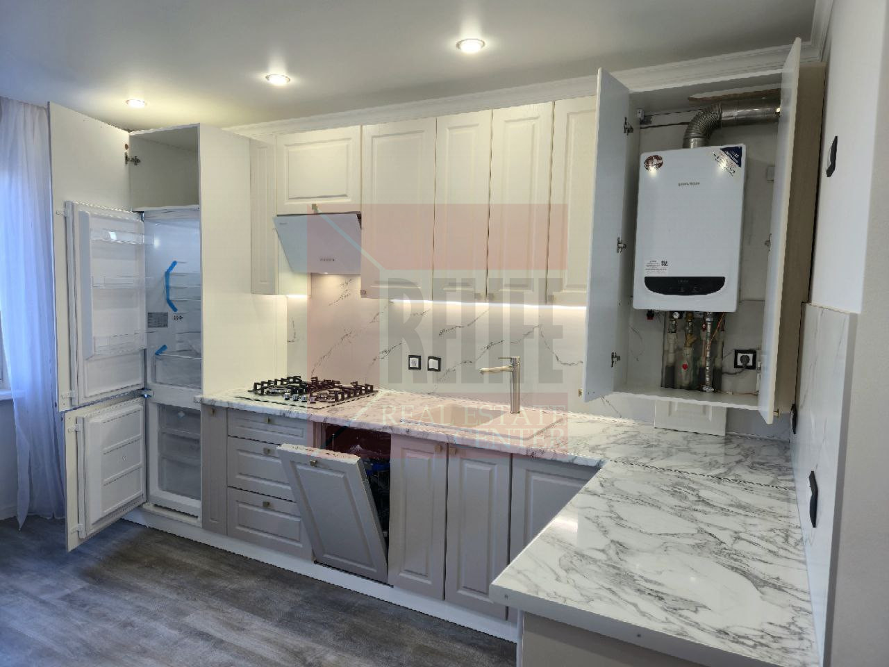 Кухня полностью оборудована современной техникой и мебелью — можно заехать и жить без лишних забот!
