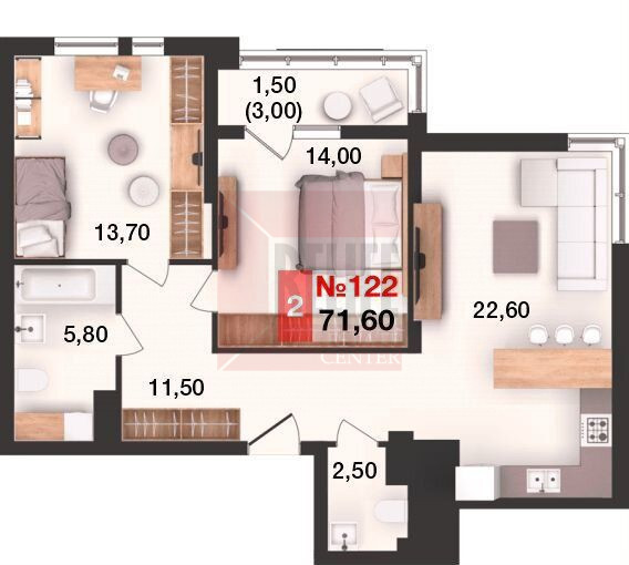 Общая площадь квартиры 71,6 кв. м., продуманная планировка, которая максимально эффективно позволит использовать пространство помещений и создать любой интерьер: спальня 14,00 кв. м., вторая спальня 13,70 кв. м., просторная кухня 22,60 кв. м. с выходом на балкон 1,5 кв. м. Высокие потолки и окна из кухни-гостиной создают простор и комфорт для проживания. Автономное отопление обеспечит низкие коммунальные платежи.