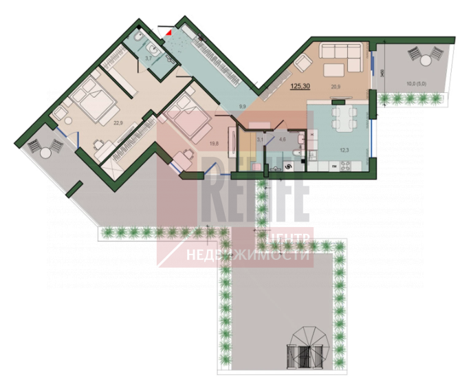 Квартира с двумя роскошными террасами площадью 49,1м2 и 12,3м2