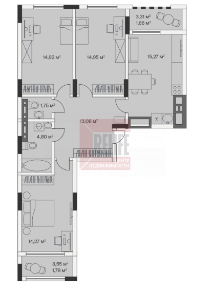 Площадь квартиры 83,3м2 без отделки. Есть возможность заказать ремонт "под ключ" у застройщика.