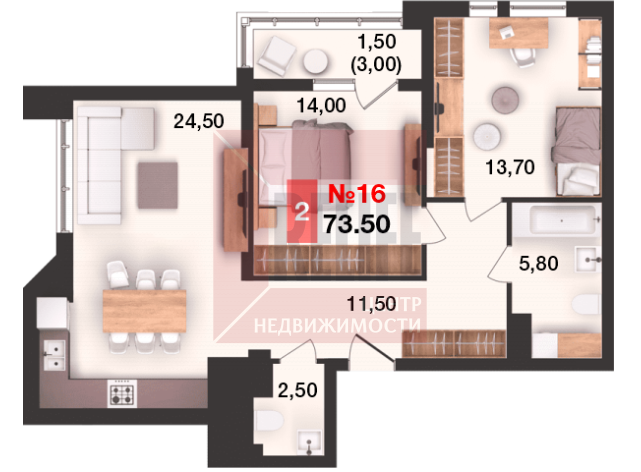 Общая площадь квартиры 73,5 кв. м., продуманная планировка, которая максимально эффективно позволит использовать пространство помещений и создать любой интерьер: спальня 14,00 кв. м., вторая спальня 13,70 кв. м., просторная кухня 24,5 кв. м. с выходом на балкон 3,0 кв. м. Высокие потолки и окна из кухни-гостиной создают простор и комфорт для проживания. Автономное отопление обеспечит низкие коммунальные платежи.