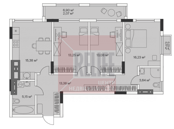 Площадь квартиры 82,3 м2 без отделки. Есть возможность заказать ремонт "под ключ" у застройщика.