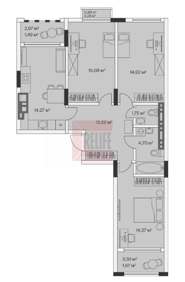 Квартира, 3-к, 81 кв.м., 2 эт. — Relife