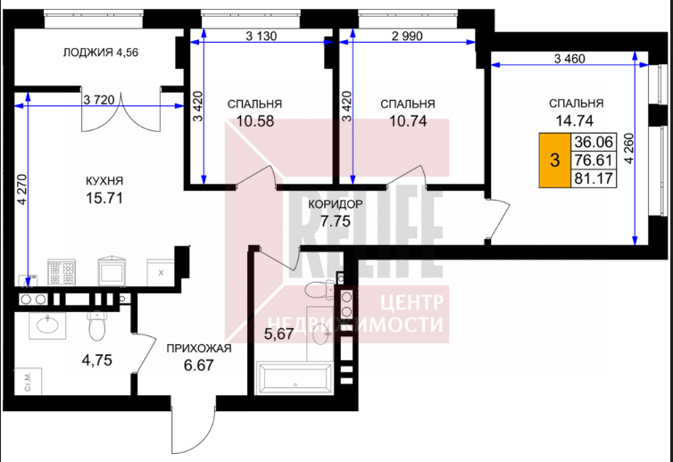 Продается 3-х комнатная квартира, площадью 82,4 м2! Ремонт в подарок! Закрытая территория, своя инфраструктура и готовые решения для жизни.