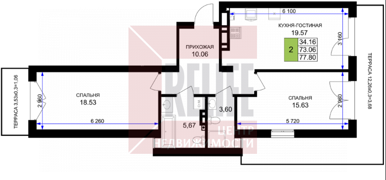 Продается 2-х комнатная квартира, площадью 80,7 м2! Ремонт в подарок! Закрытая территория, своя инфраструктура и готовые решения для жизни.