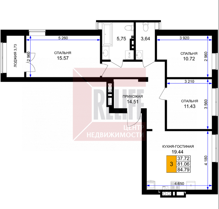 Квартира, 3-к, 86 кв.м., 2 эт. — Relife