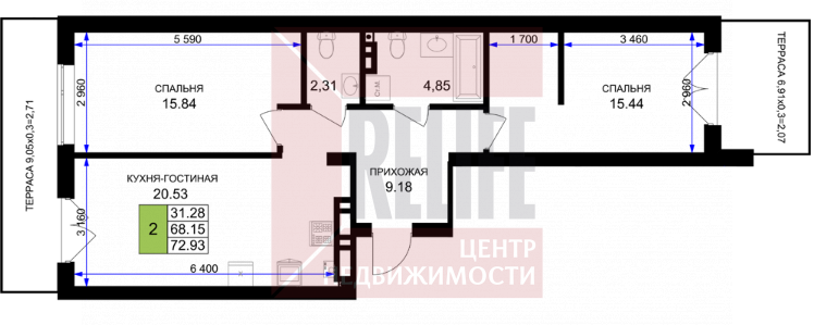 Продается 2-х комнатная квартира, площадью 73.7 м2!