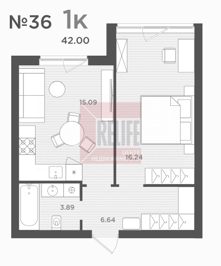 Квартира, 1-к, 42 кв.м., 2 эт. — Relife