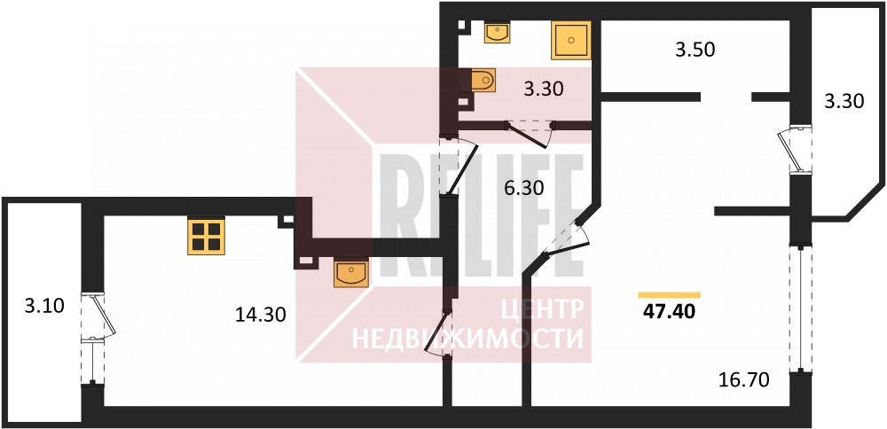 Планировка квартиры функциональна. Общая площадь квартиры 47,4 кв. м, комната 16,7 кв. м., кухня 14,3 кв. м., ванная комната, холл с предусмотренной зоной хранения.