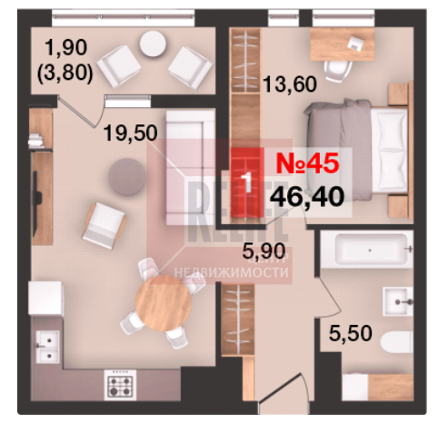 Общая площадь квартиры 46,4 кв. м., продуманная планировка, которая максимально эффективно позволит использовать пространство помещений и создать любой интерьер: спальня 13.6 кв. м., просторная кухня 19,5 кв. м. с выходом на балкон 3,8 кв. м. Высокие потолки и окна из кухни-гостиной создают простор и комфорт для проживания. Автономное отопление обеспечит низкие коммунальные платежи.