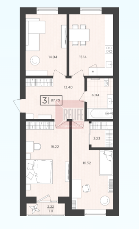 Квартира, 3-к, 88 кв.м., 3 эт. — Relife