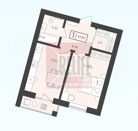 43.82 кв.м.