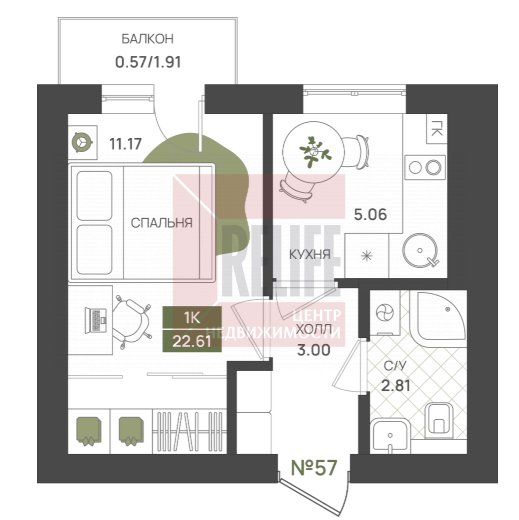 Квартира, 1-к, 23 кв.м., 2 эт. — Relife