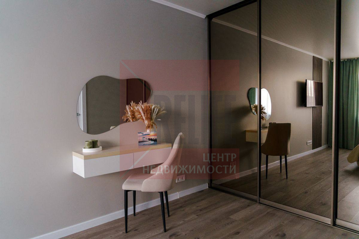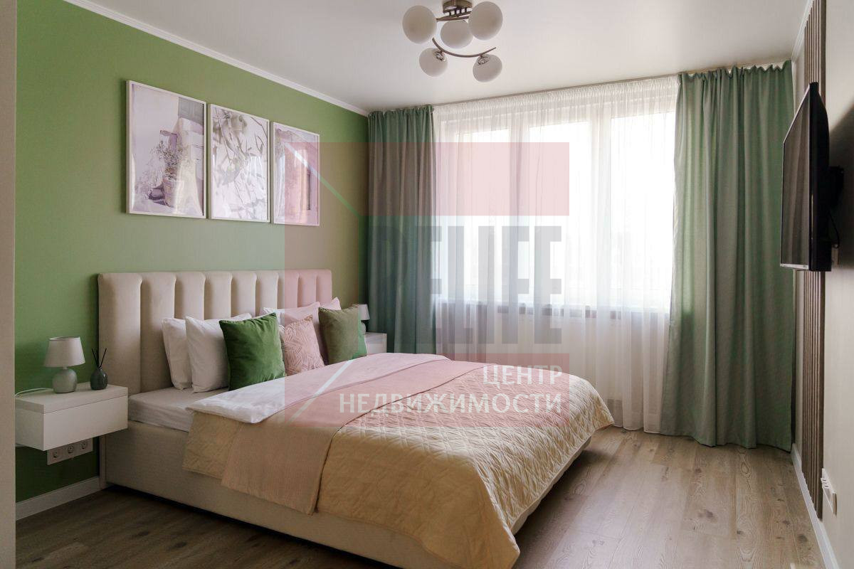 Интерьер выполнен в спокойных, благородных тонах: уютная спальня с акцентной стеной, продуманное освещение. Качественная мебель и текстиль создают ощущение комфорта и уюта с первых минут.