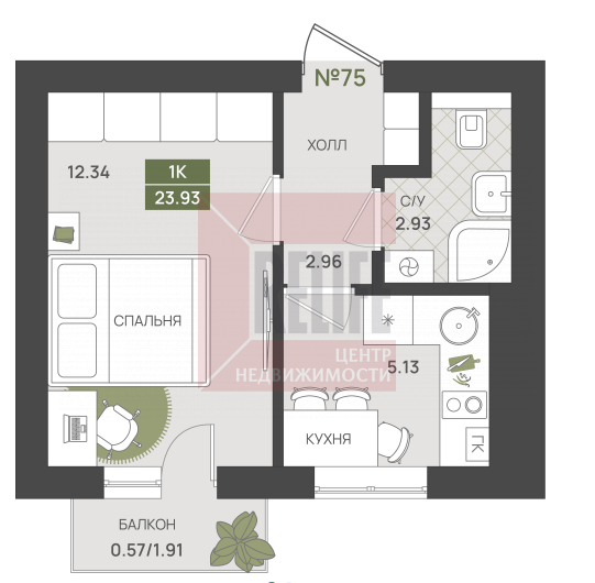 Квартира, 1-к, 24 кв.м., 5 эт. — Relife