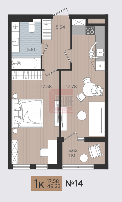 Квартира, 1-к, 48 кв.м., 4 эт. — Relife