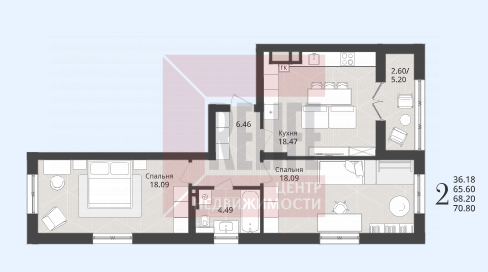 Квартира, 2-к, 65 кв.м., 2 эт.