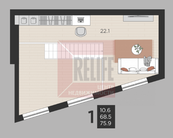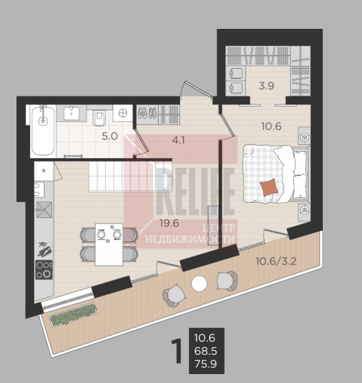 В квартире: Свободная планировка на двух уровнях (68,5 м²). Четвертый этаж — отличные видовые характеристики.