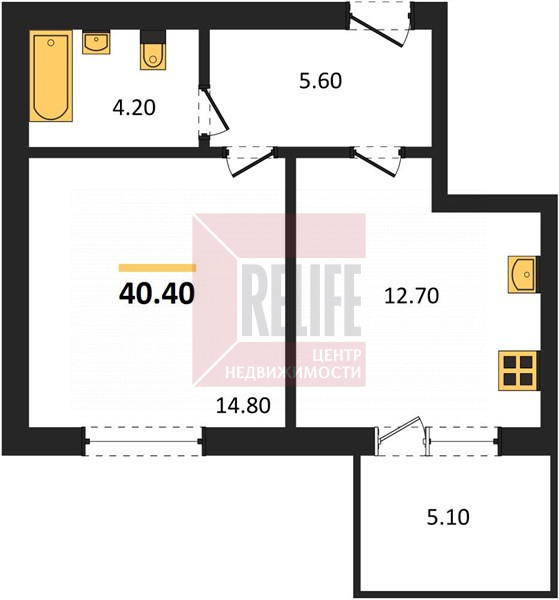 Квартира, 1-к, 40 кв.м., 2 эт.