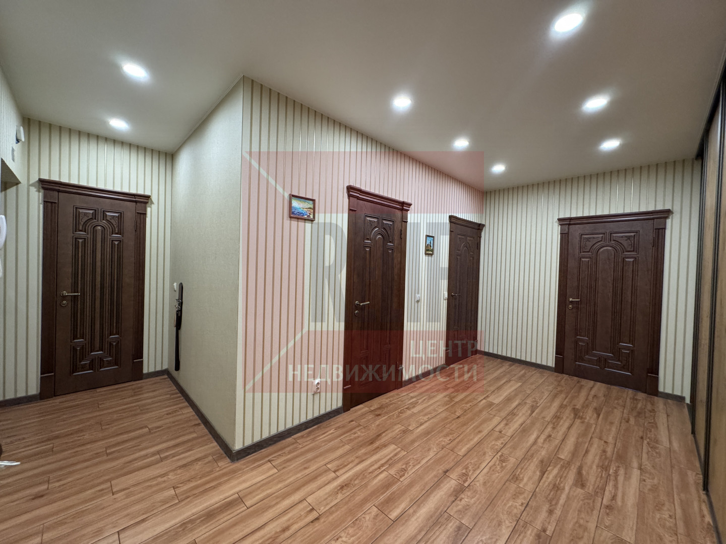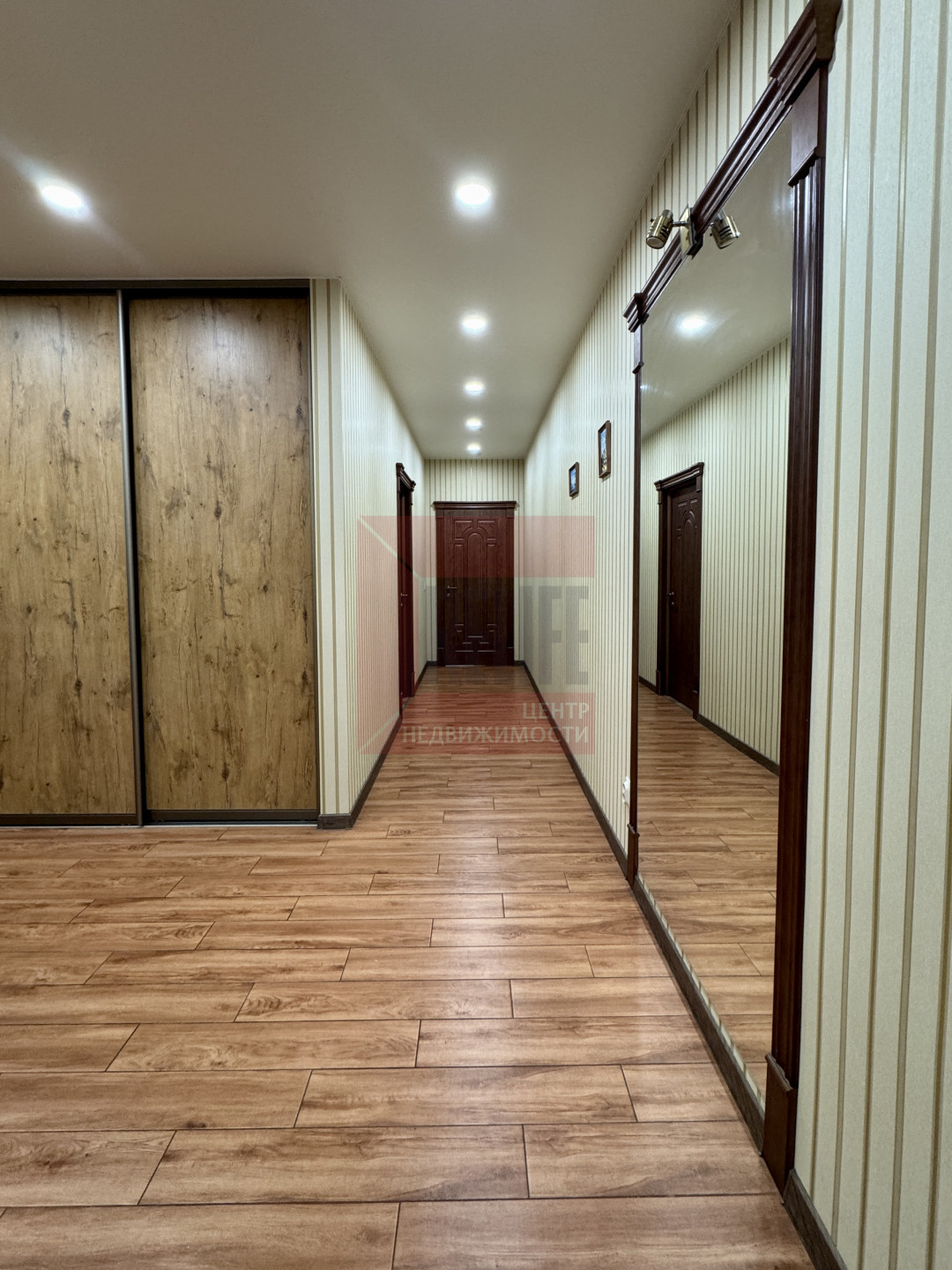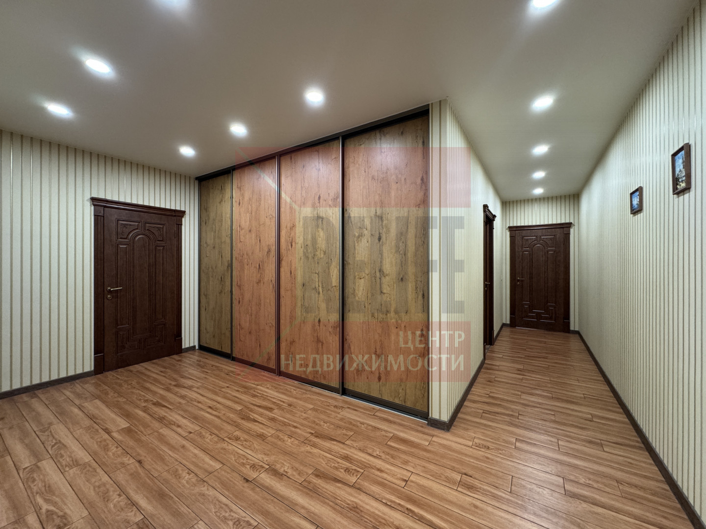 Просторный холл со встроенной гардеробной системой.