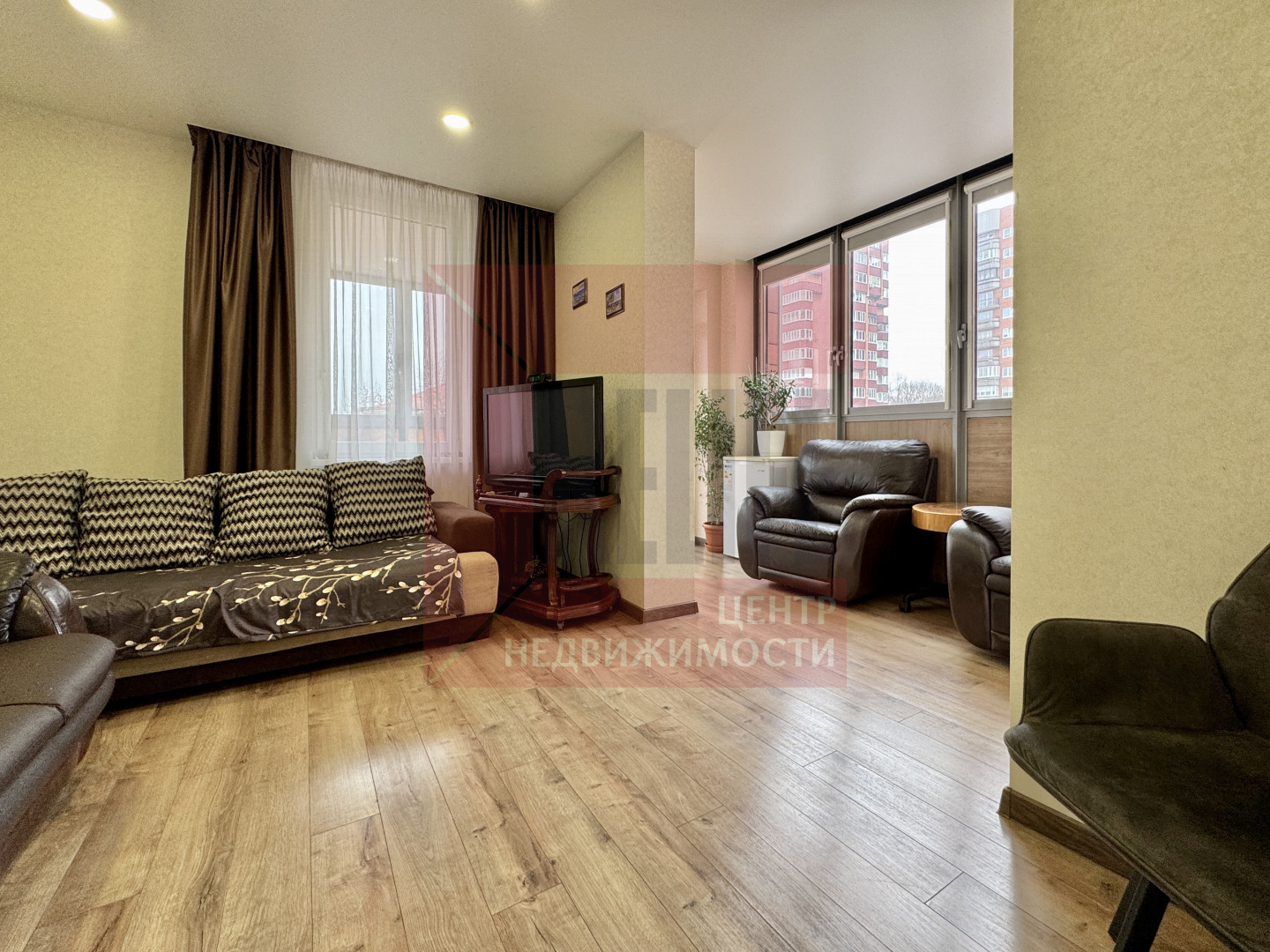 Интересная внутренняя конфигурация квартиры благодаря двум теплым панорамным лоджиям , которые стали продолжением жилых комнат. Здесь можно создать зимний сад, мастерскую или учебную зону.