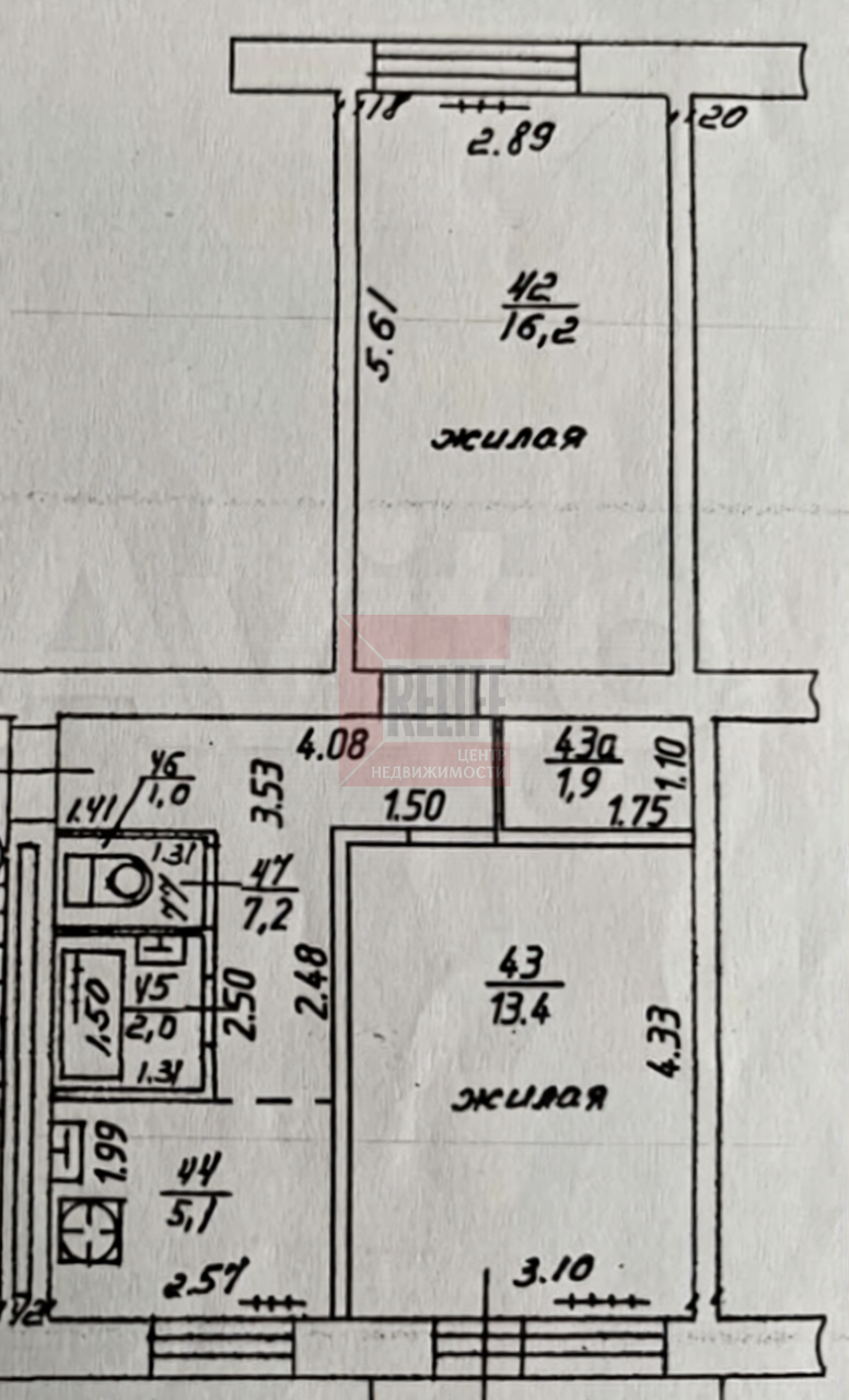 - общая плoщaдь: 46,8 кв.м