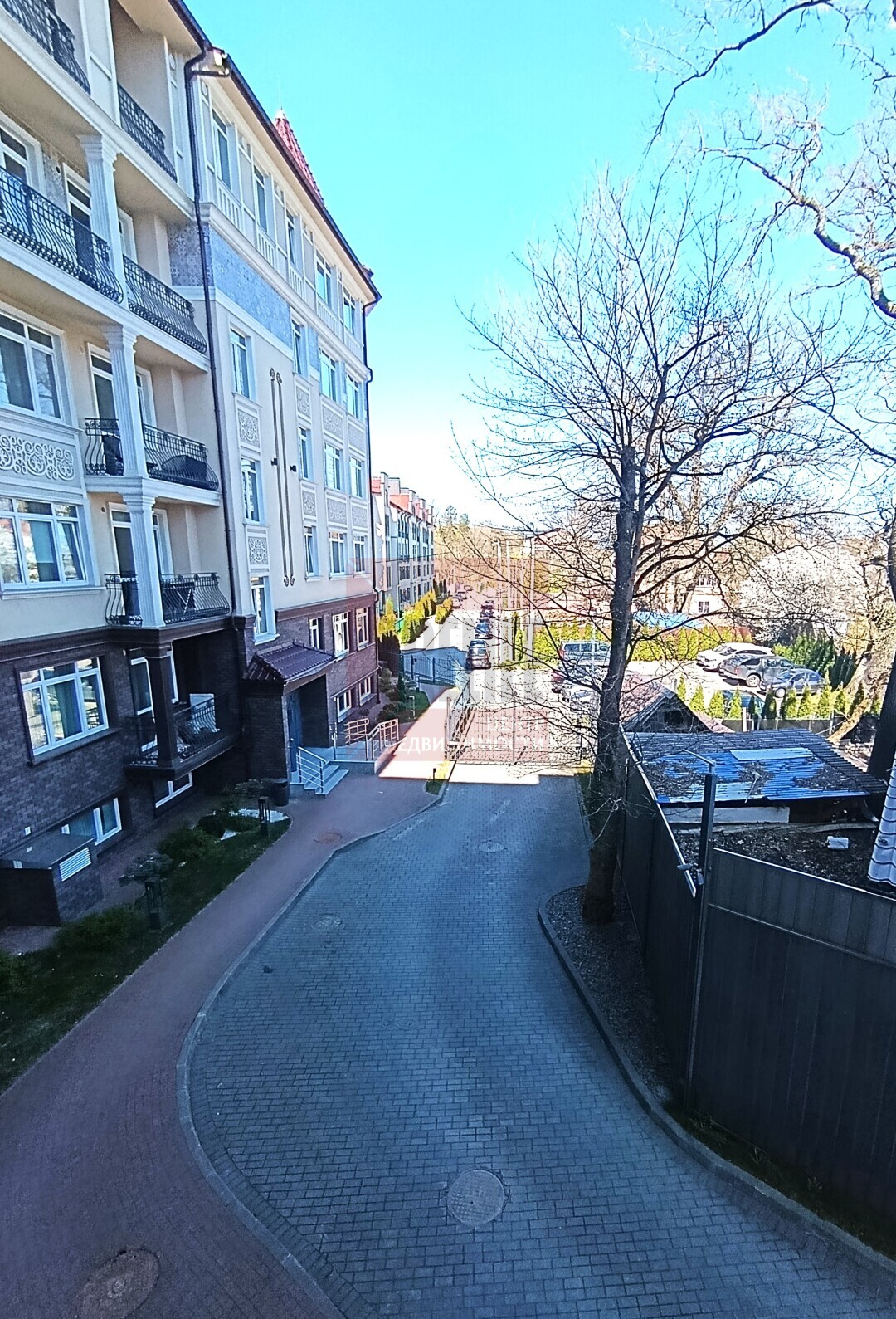 - Вид из окон: Окна выходят на тихую зеленую улицу и двор, много света.
