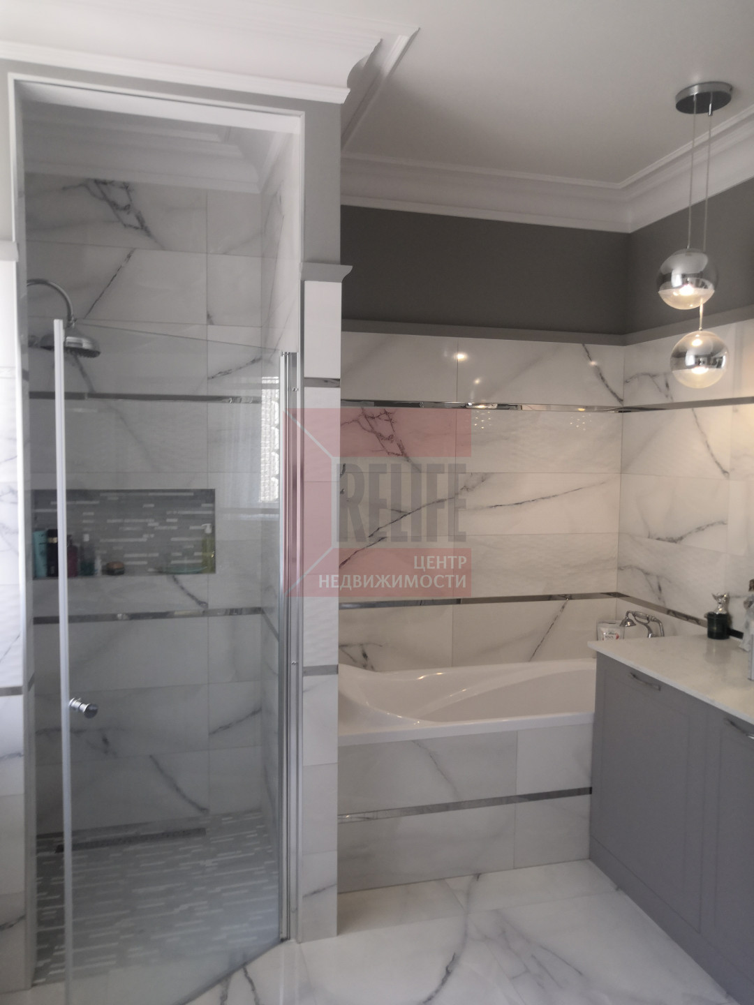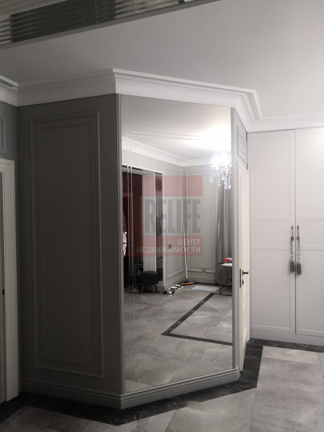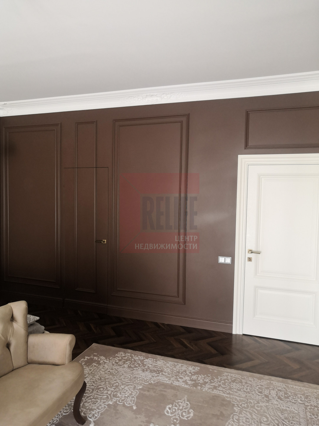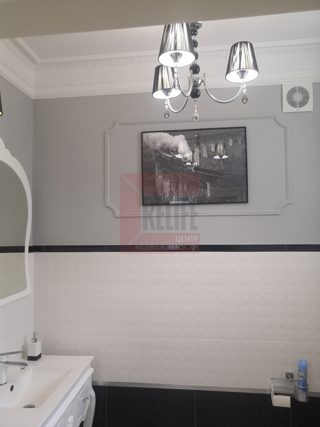 В доме выполнен дизайнерский ремонт в неоклассическом стиле, главная черта которого - это гармоничное сочетание традиций и инноваций. Неоклассика взяла из классических интерьеров склонность к использованию натуральных материалов, в интерьере использовались такие материалы как натуральное дерево и камень. Благодаря панорамному остеклению и высоким потолкам весь дом наполняется светом.
