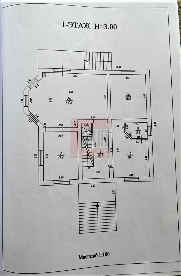 - 1 этаж: просторный холл с гардеробной 37 кв.м, гостиная с действующим камином 42.2 кв.м и выходом на придомовую территорию, кухня 17.4 кв.м, гостевая спальня 19.5 кв.м, гостевой санузел.