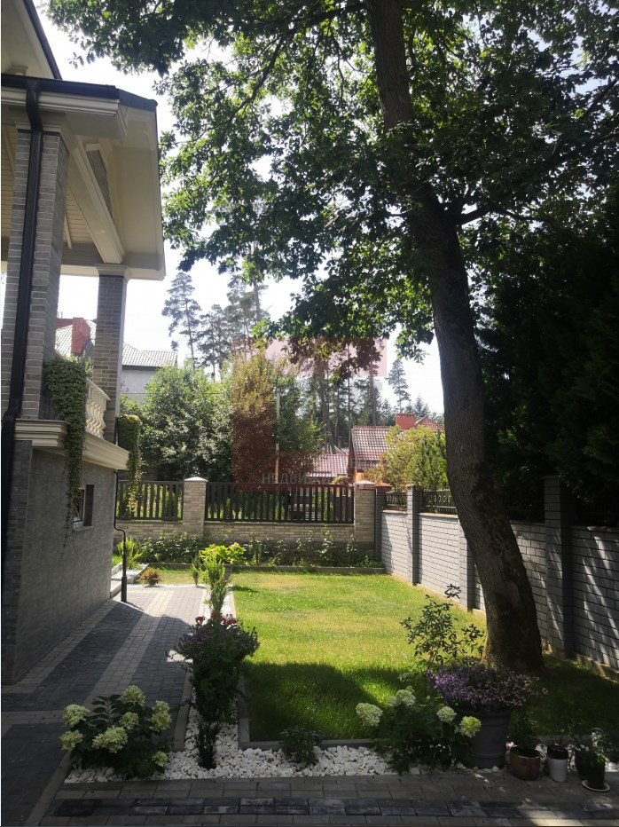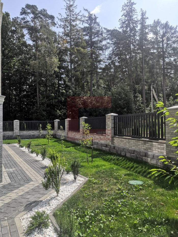 Придомовая территория полностью огорожена. Выполнен ландшафтный дизайн: разбиты газоны и цветники, высажены плодовые, вечнозеленые деревья и кустарники, организована lounge-зона с мебелью и шезлонгами , а так же отдельная летняя кухня с зоной барбекю. Центральные коммуникации с подземным подключением не нарушает гармоничный вид участка.