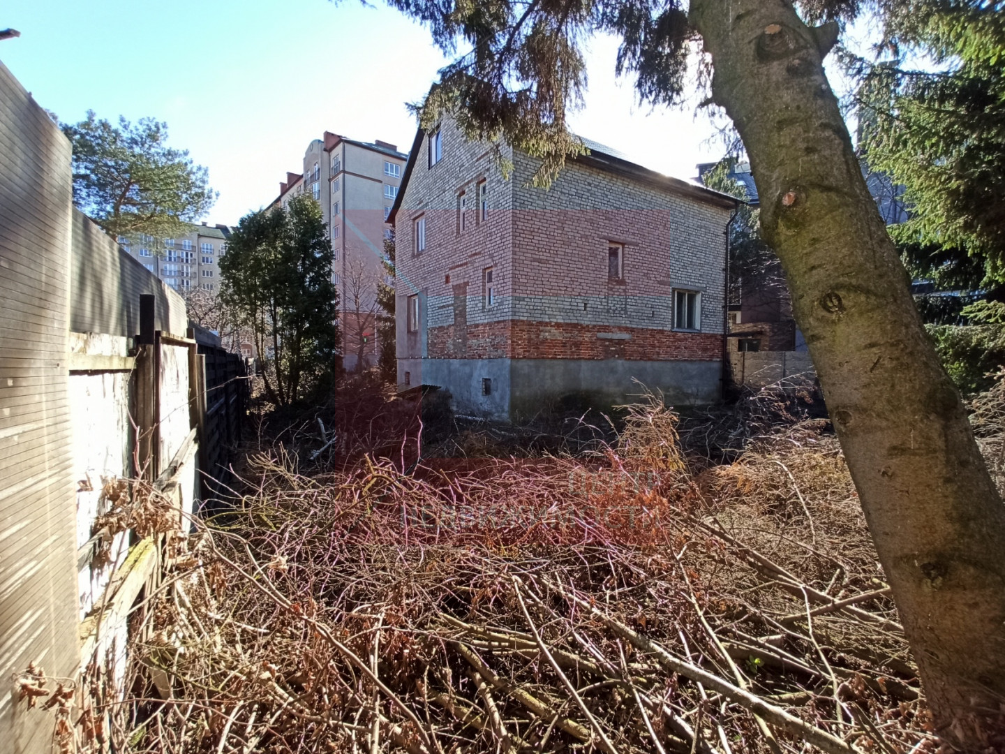 Земельный участок огорожен. На территории участка расположен 3-х этажный кирпичный дом общей площадью 212 кв.м.