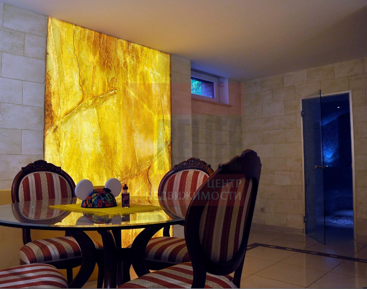 При постройке данной недвижимости общестроительные и внутренние отделочные работы производились с применением самых дорогостоящих и качественных материалов, под строгим контролем. Дом построен на века. В ремонте использовались такие материалы, как мрамор, оникс и натуральное дерево, имеются витражные потолки, ковка, настоящая работа художника. Превосходный, тщательно продуманный, интерьер с преобладанием современной европейской классики. Элегантный и практичный. Продается со встроенной мебелью и техникой, остальная меблировка - по договоренности. В доме автономное газовое отопление, водяной тёплый пол, система кондиционирования.
