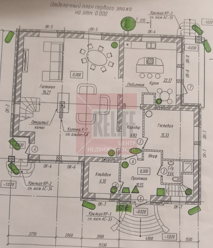 - цоколь: хамам с комнатой отдыха, холл, прачечная, свободное помещение, бойлерная, гараж на 2 машины.