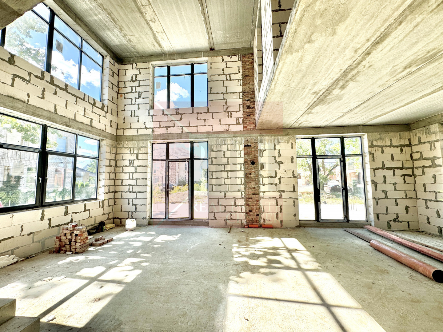 - проведена разводка кабеля для: подключения кондиционеров охранной сигнализации, включая видео наблюдения, интернета, автоматического открытия ворот и видео домофона.