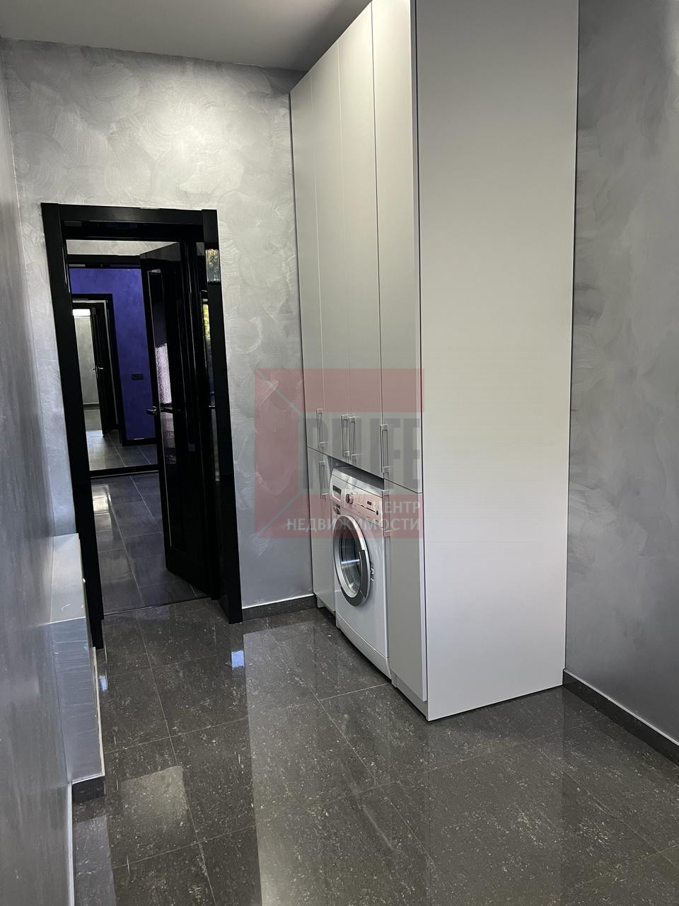 Просторный холл с системами хранения. Два больших санузла. Техническое помещение и прачечная.